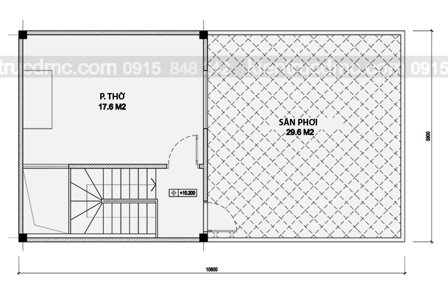 Mặt bằng tầng 4 – Thiết kế nhà phố 3,5 tầng mặt tiền 3,3m