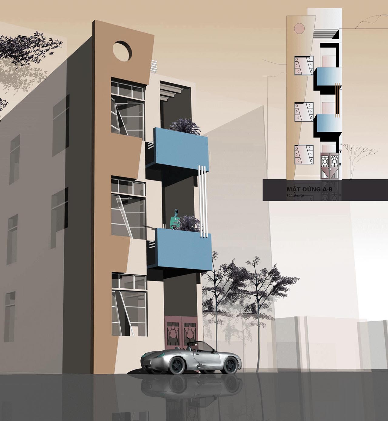 Mấu số 9 – Mẫu thiết kế nhà phố, nhà lô 3 tầng