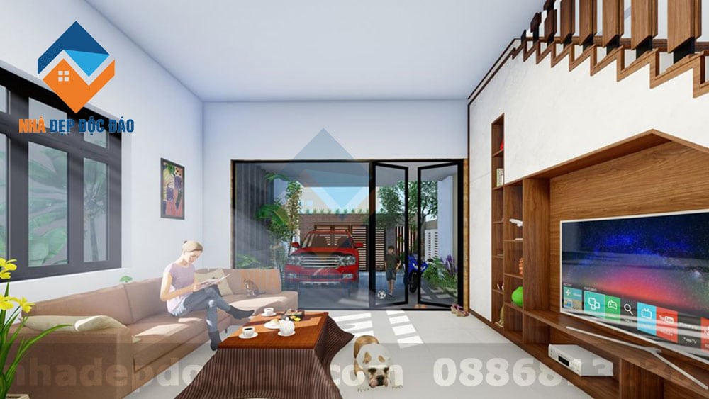 Nội thất phòng khách -Thiết kế nhà phố 2,5 tầng 2 mặt tiền trên diện tích 180m2